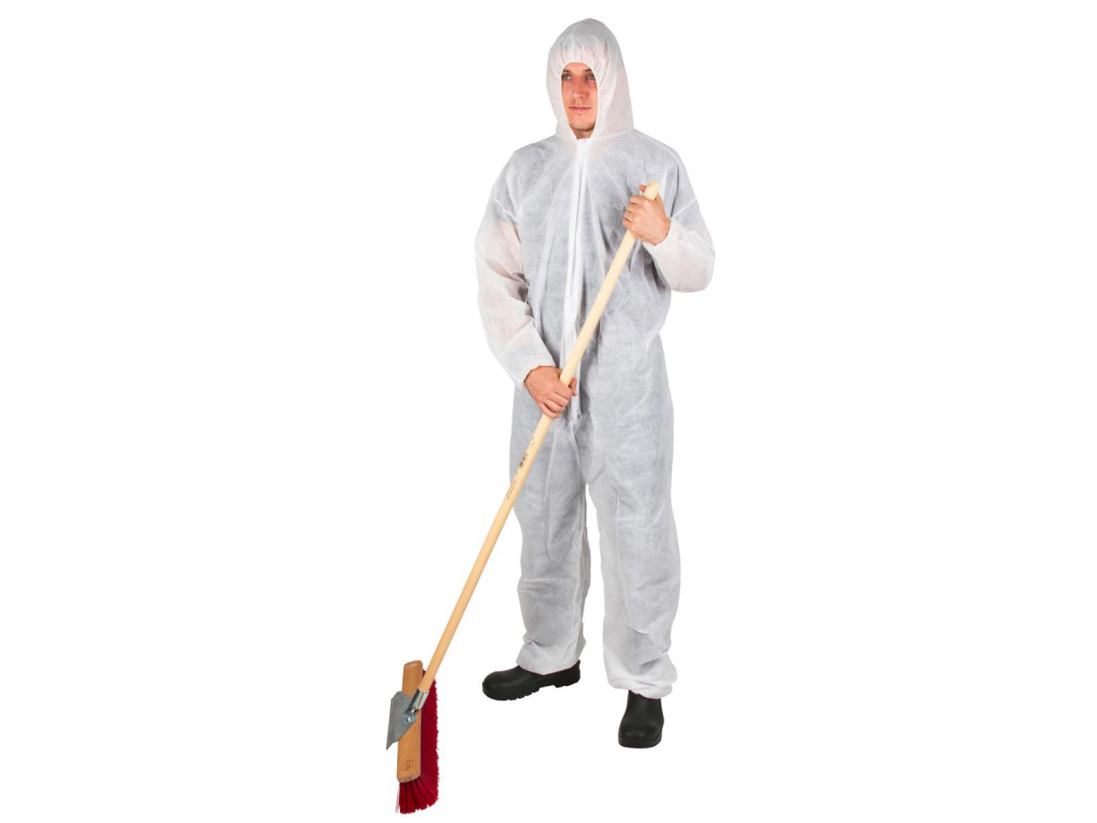 With hood and lightning. Elastic on the arms, legs and waist. Material: polypropylene.